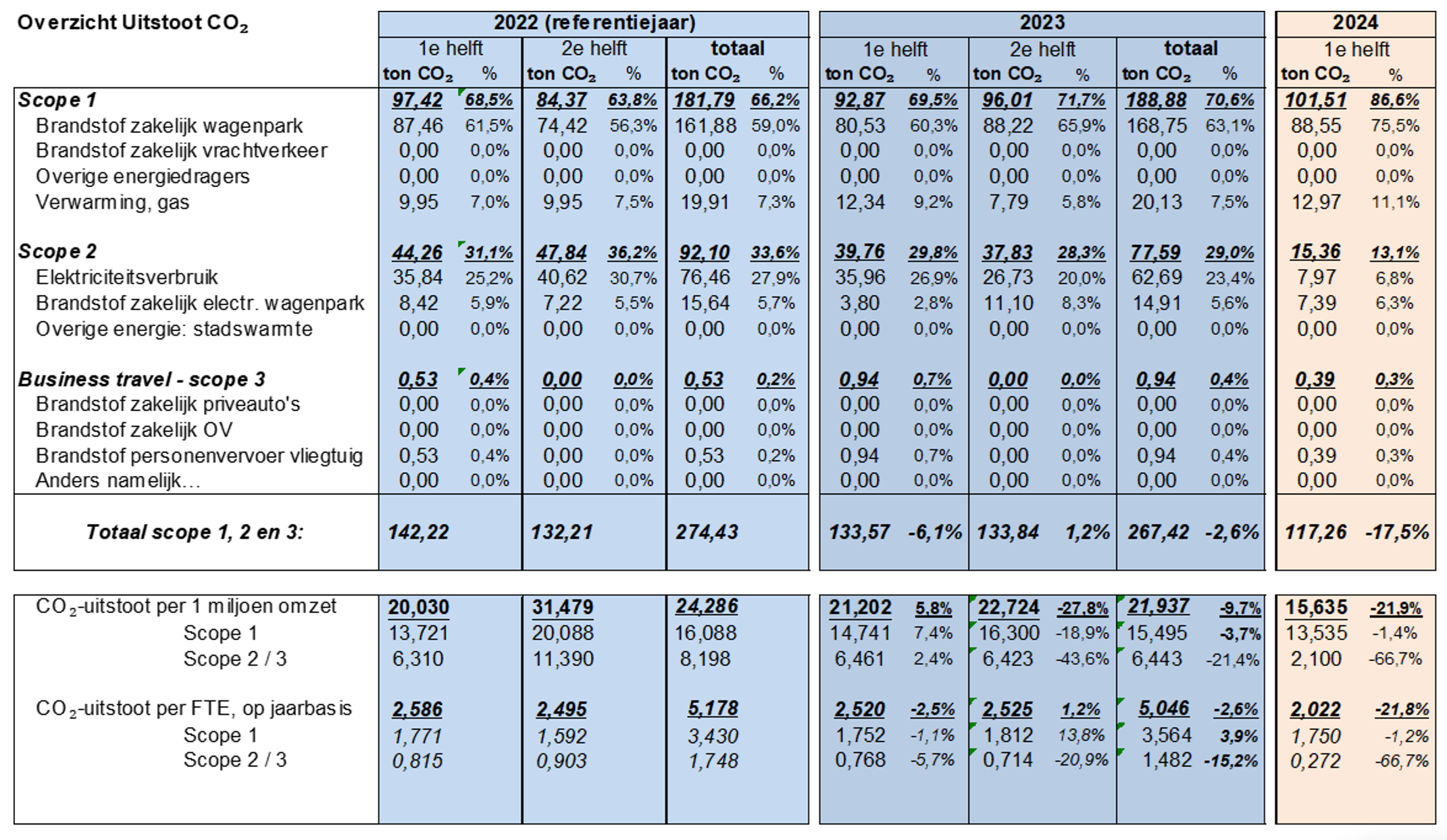 Per FTE was de uitstoot 3,564 ton CO2 (2022: 3,430 ton CO2), ca. 3,9% hoger.